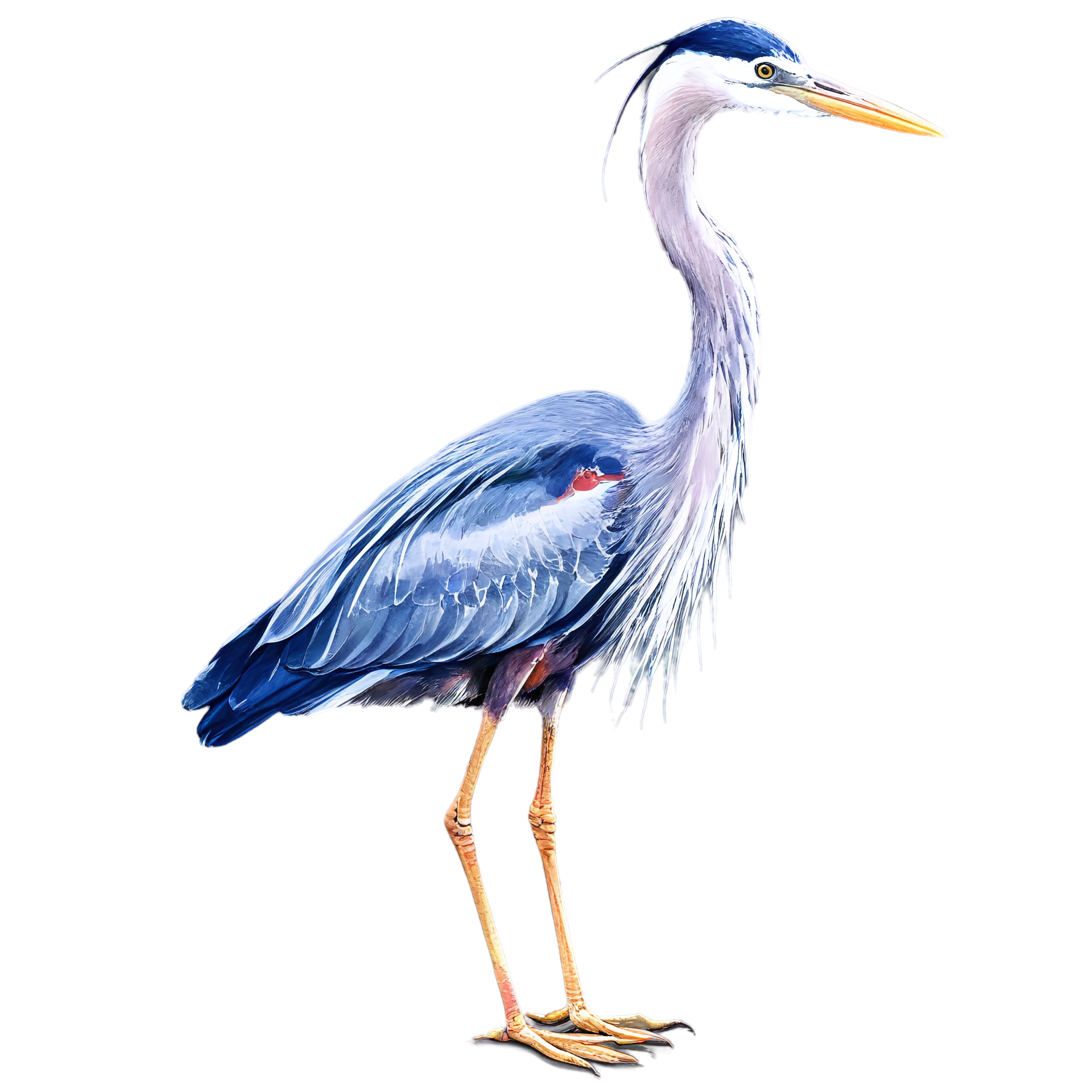 Transparent PNG bird illustrations drop seamlessly into any design tool. In Canva, drag a bird onto your canvas and layer it with text frames, botanical elements, or background textures. In Photoshop or Illustrator, place the PNG as a smart object and composite it with other layers — pair the Great Blue Heron with a wetland watercolor wash, or position the Blue Jay against a hand-lettered quote. Common project ideas include: nature-themed greeting cards and stationery sets, birdwatcher journal covers and field guide templates, seasonal wall art prints featuring migratory species, educational worksheets and classroom posters, wedding or baby shower invitations with bird motifs, and Etsy printable bundles marketed to nature enthusiasts. The 2048-pixel resolution works at full print quality for products up to 7 inches square.