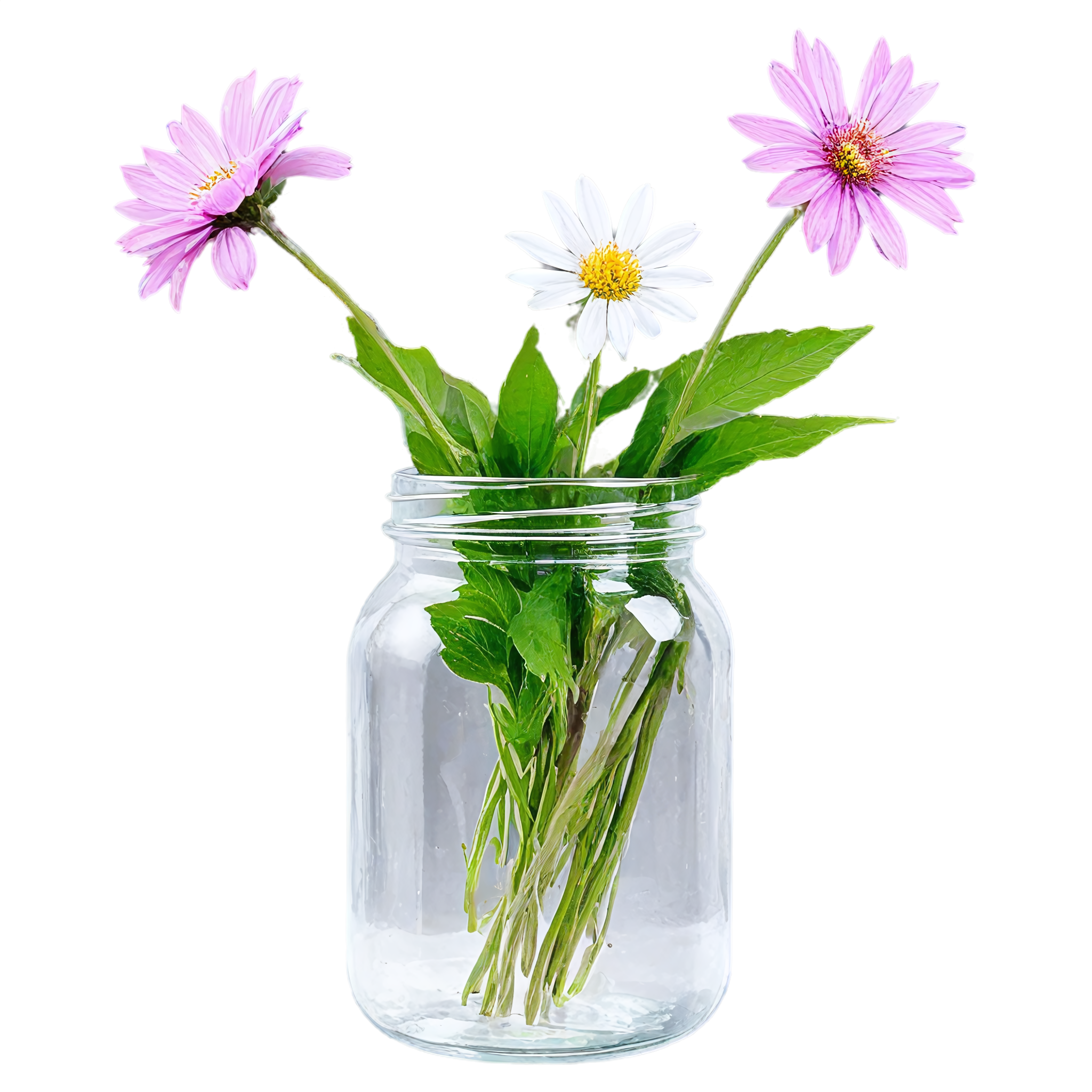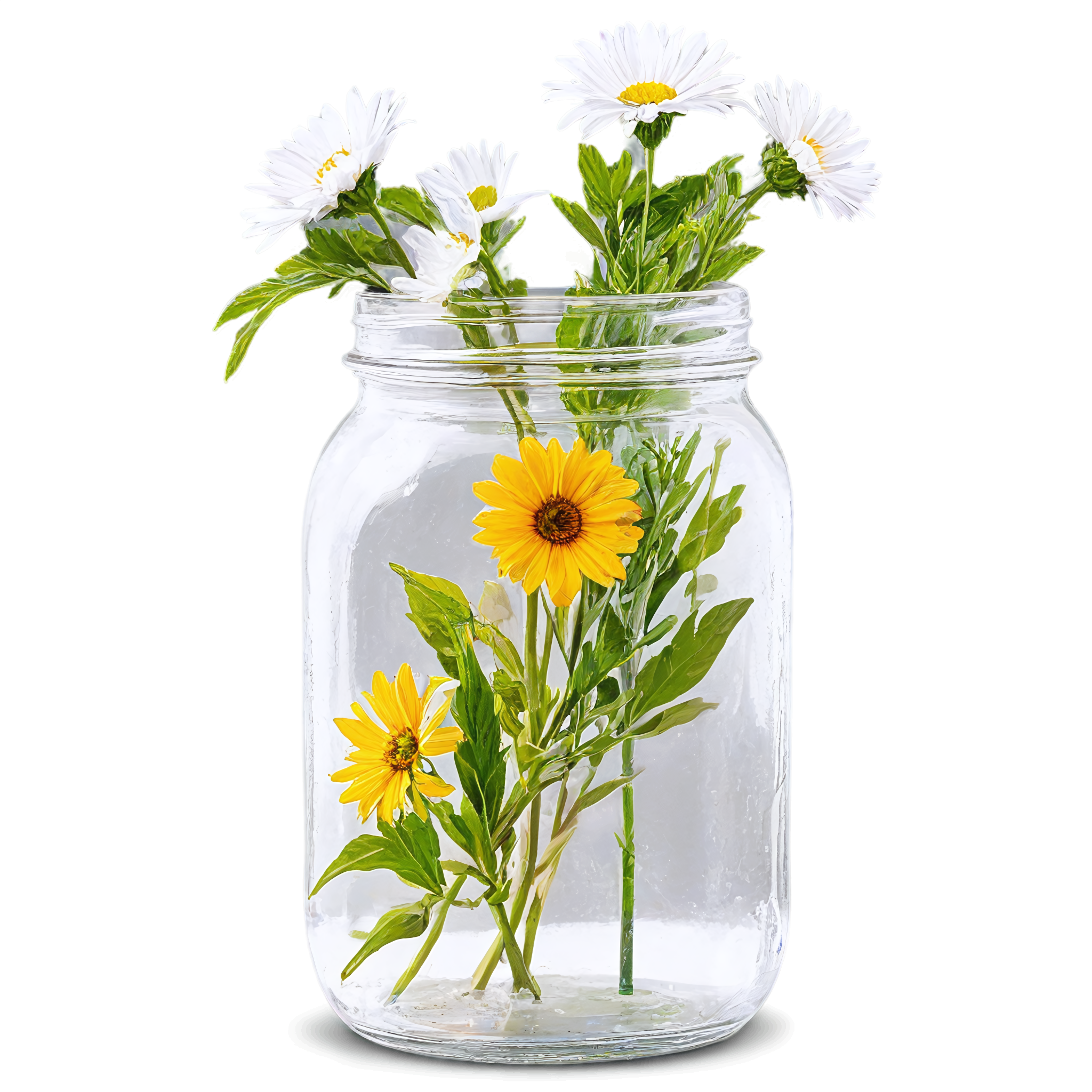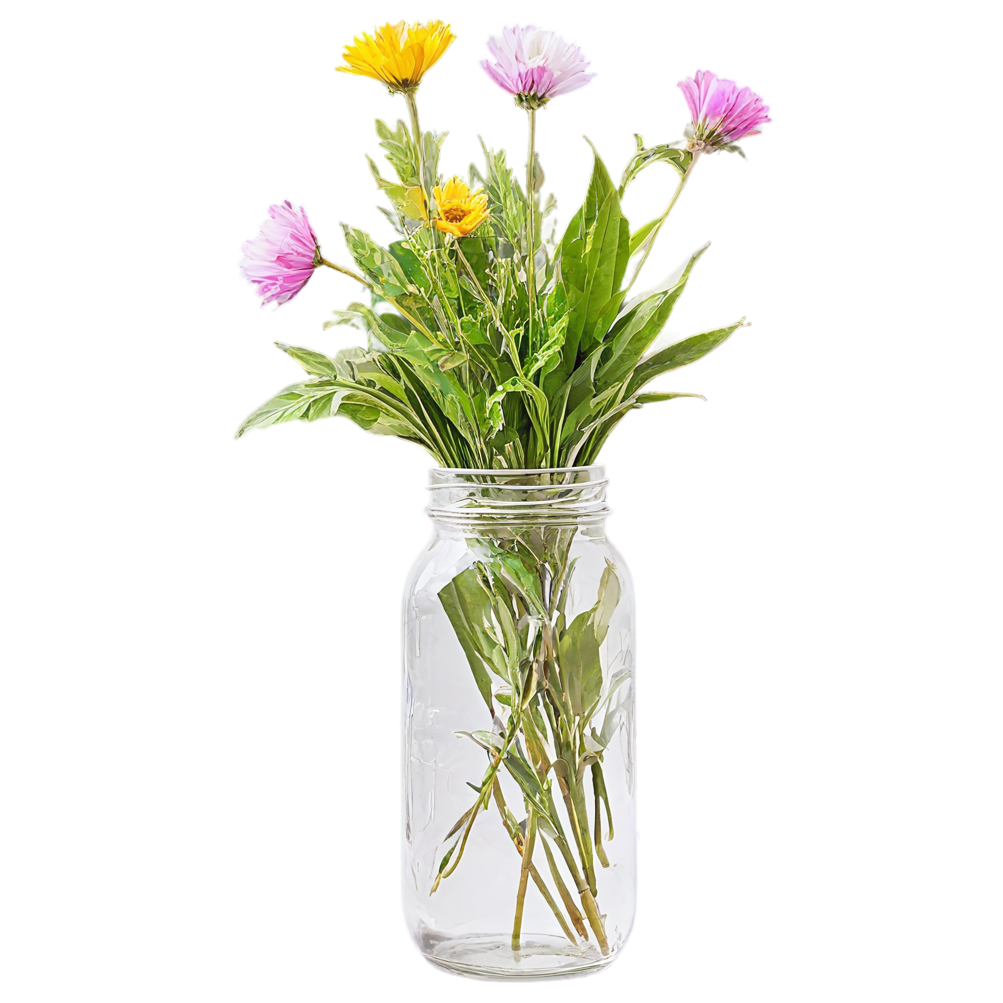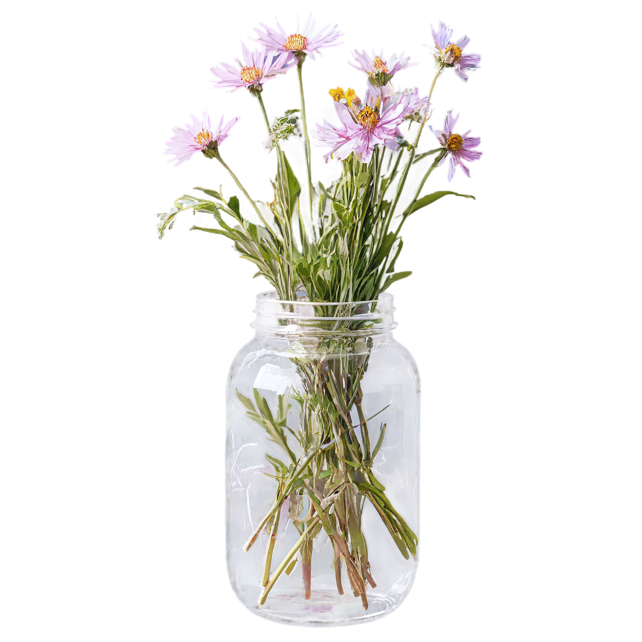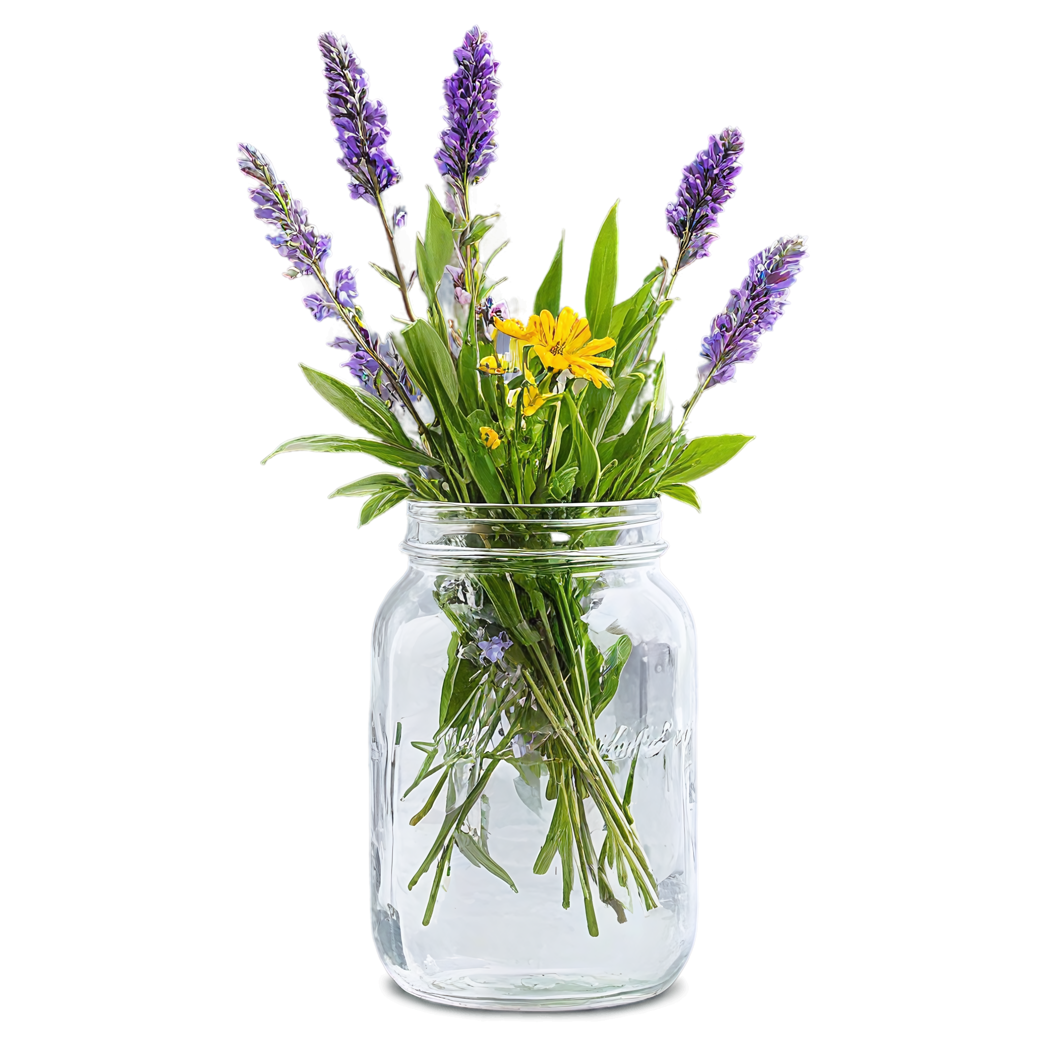 Wildflower clipart images are standalone botanical illustrations — watercolor-style bouquets, individual stems, and floral arrangements — saved as transparent PNG files. Unlike stock photos that include backgrounds, clipart elements are designed to be layered: drop them onto a wedding invitation, a greeting card template, a planner page, or a social media post and they blend seamlessly with your design. These wildflower-in-a-jar compositions pair the organic charm of meadow blooms with the familiar shape of a glass vessel, creating versatile elements that work in rustic, cottage, boho, and modern design styles alike. Each image in this collection was generated with AI-assisted watercolor techniques, curated for color accuracy, and exported at 2048x2048 pixels with a fully transparent background.